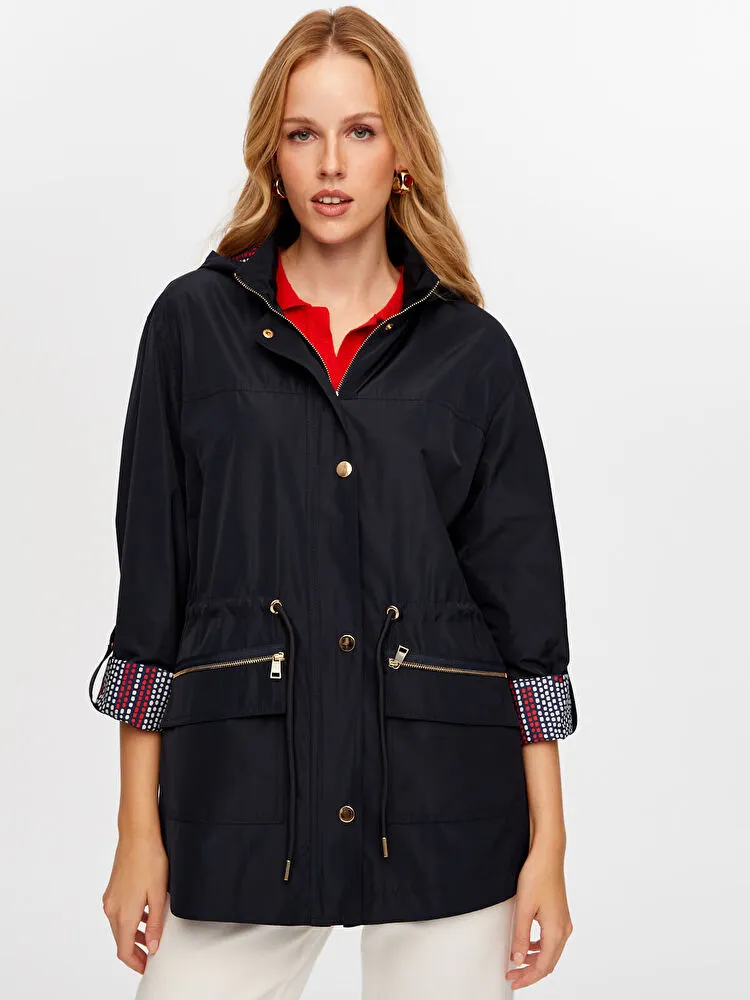 Ürün Adı : Beli Tünelli İçi Renkli Astar Detaylı Trençkot