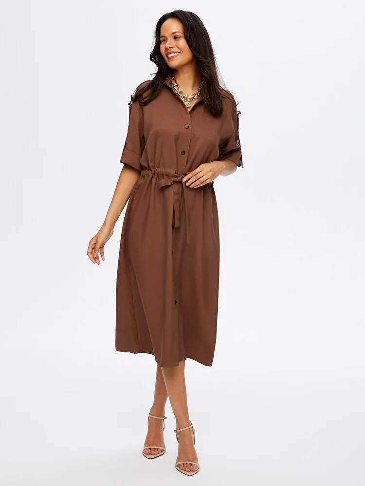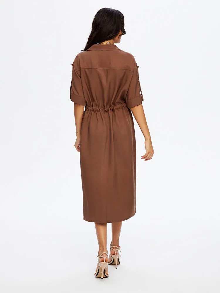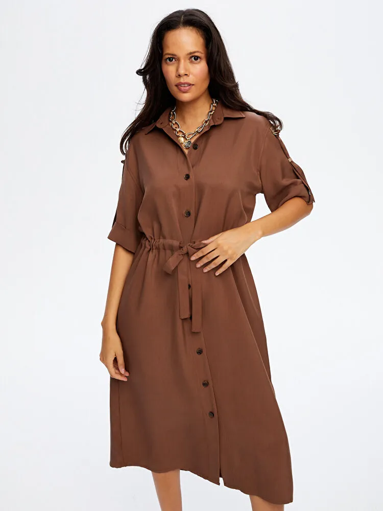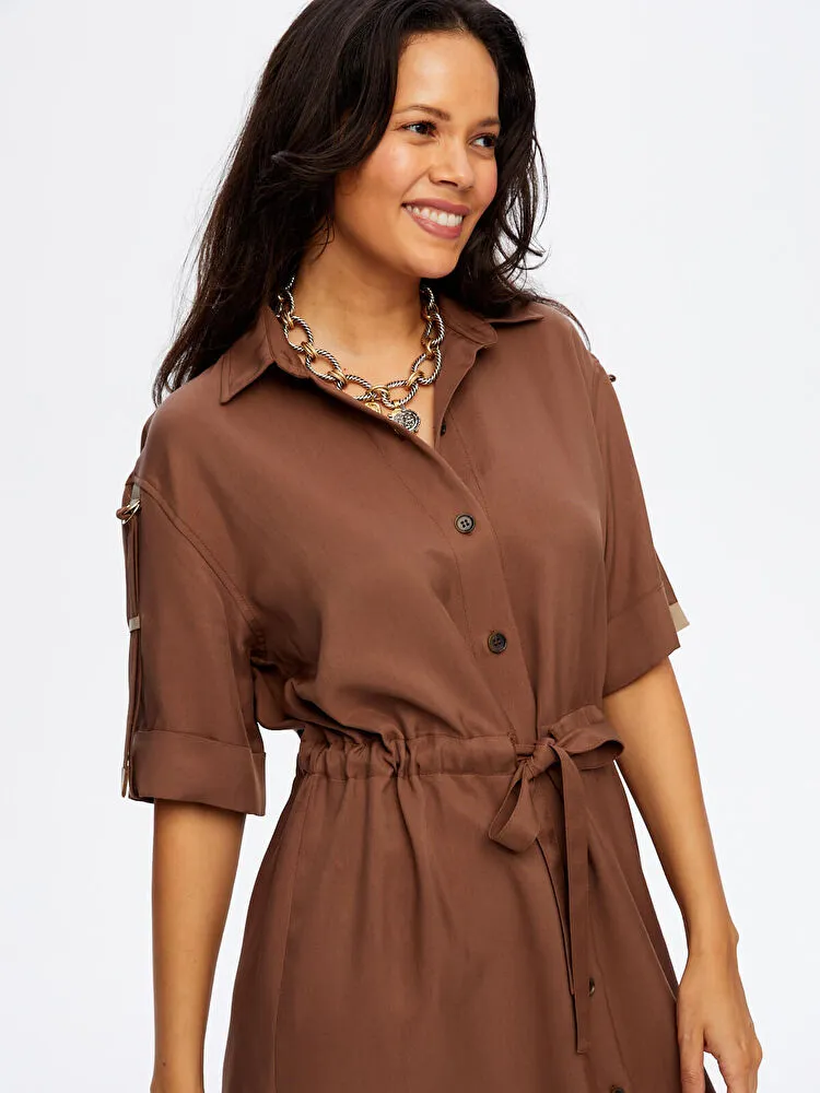 Ürün Adı : Beli Tünelli Kısa Kol Tenselli Gömlek Elbise