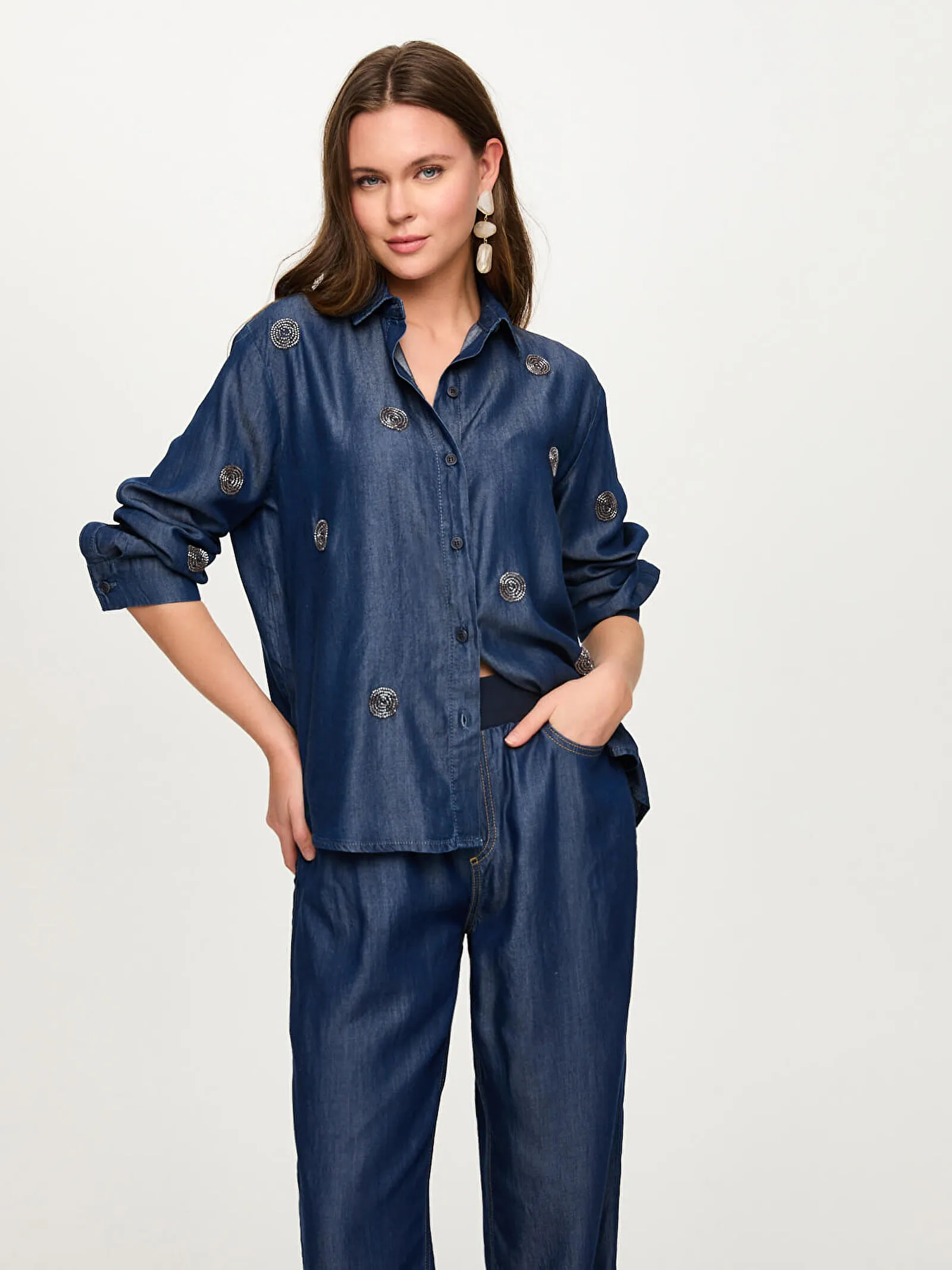 Be the first to review “Boncuk Nakış Detaylı Lyocelli Jean Gömlek S26JGM003”