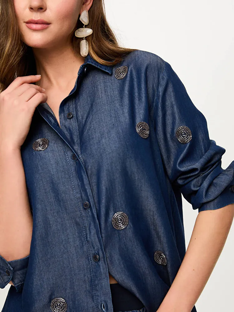 Boncuk Nakış Detaylı Lyocelli Jean Gömlek S26JGM003