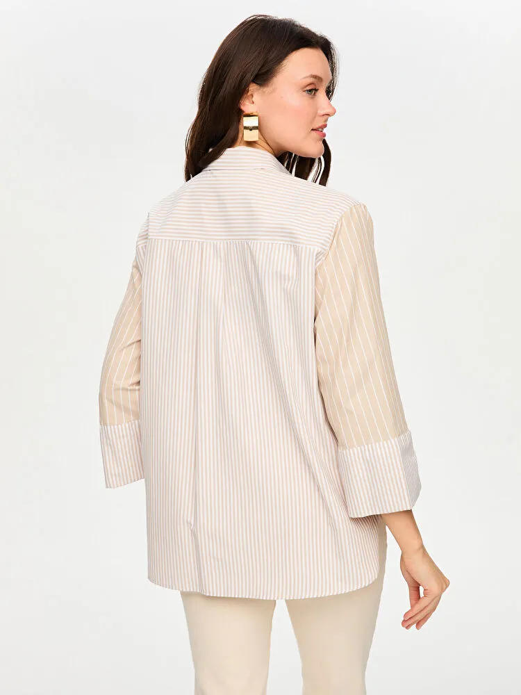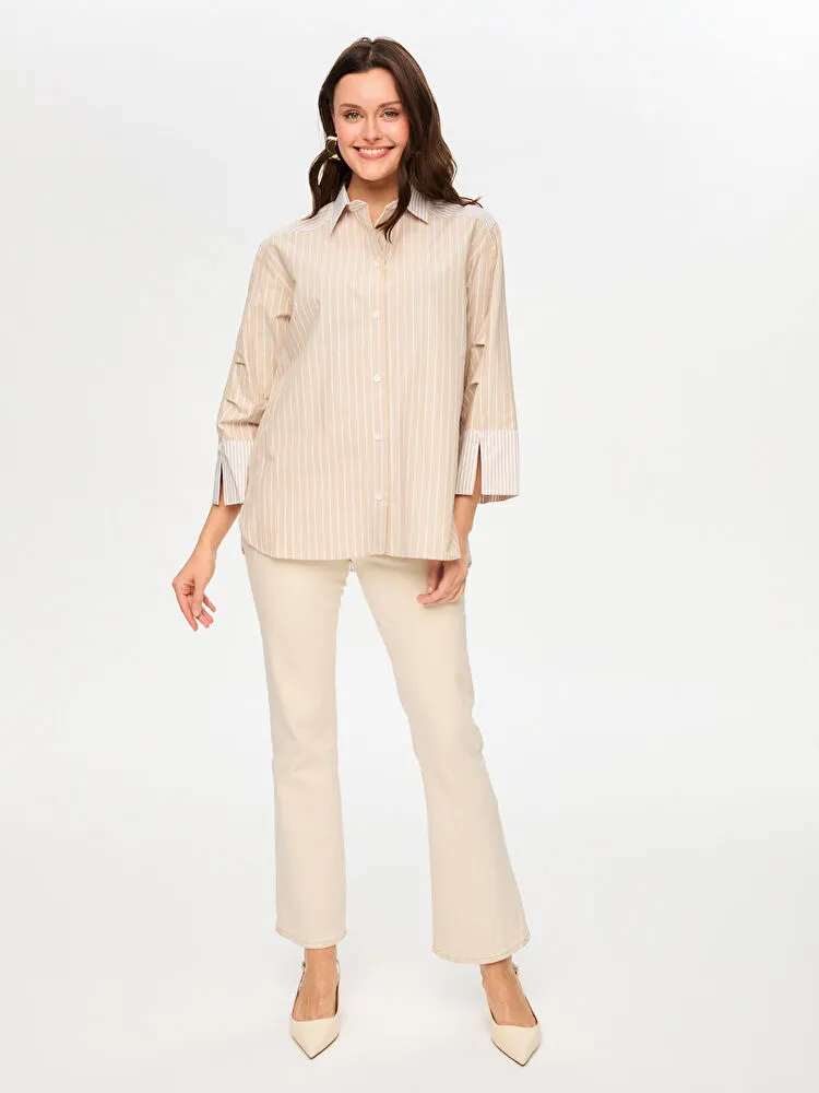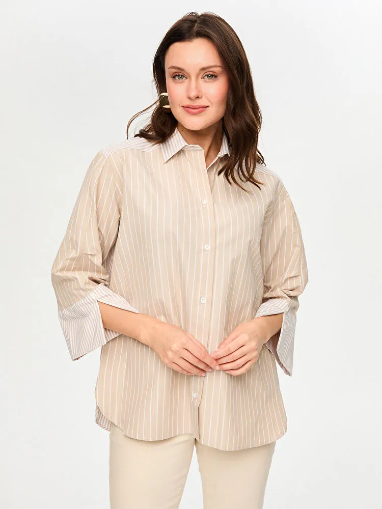 Kolları Büzgü Detaylı Çizgili Poplin Gömlek