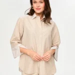 Be the first to review “Kolları Büzgü Detaylı Çizgili Poplin Gömlek”
