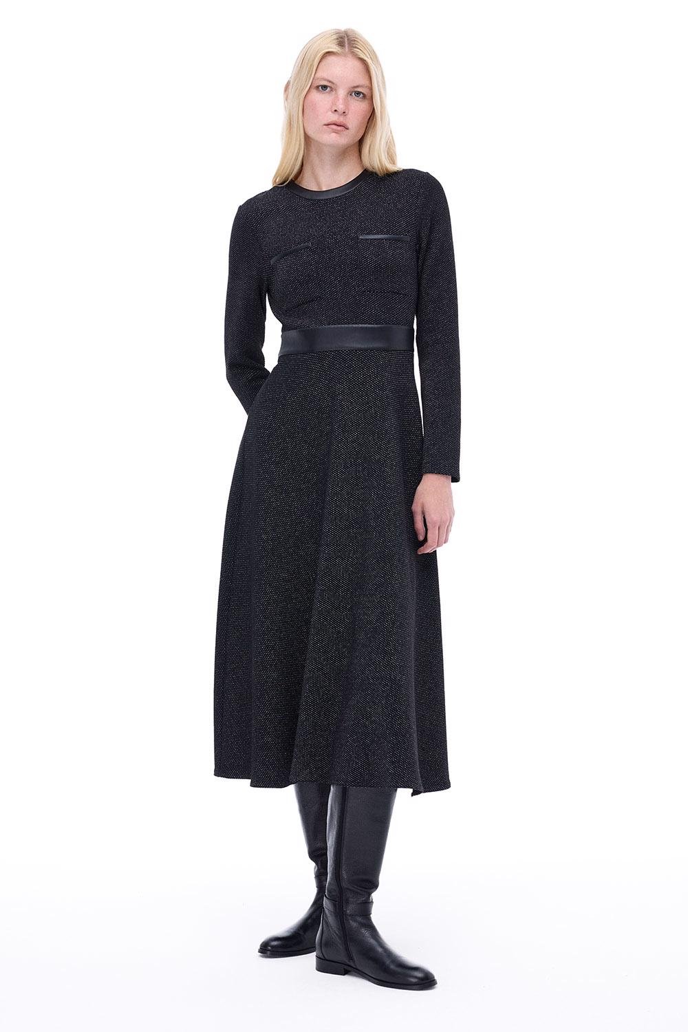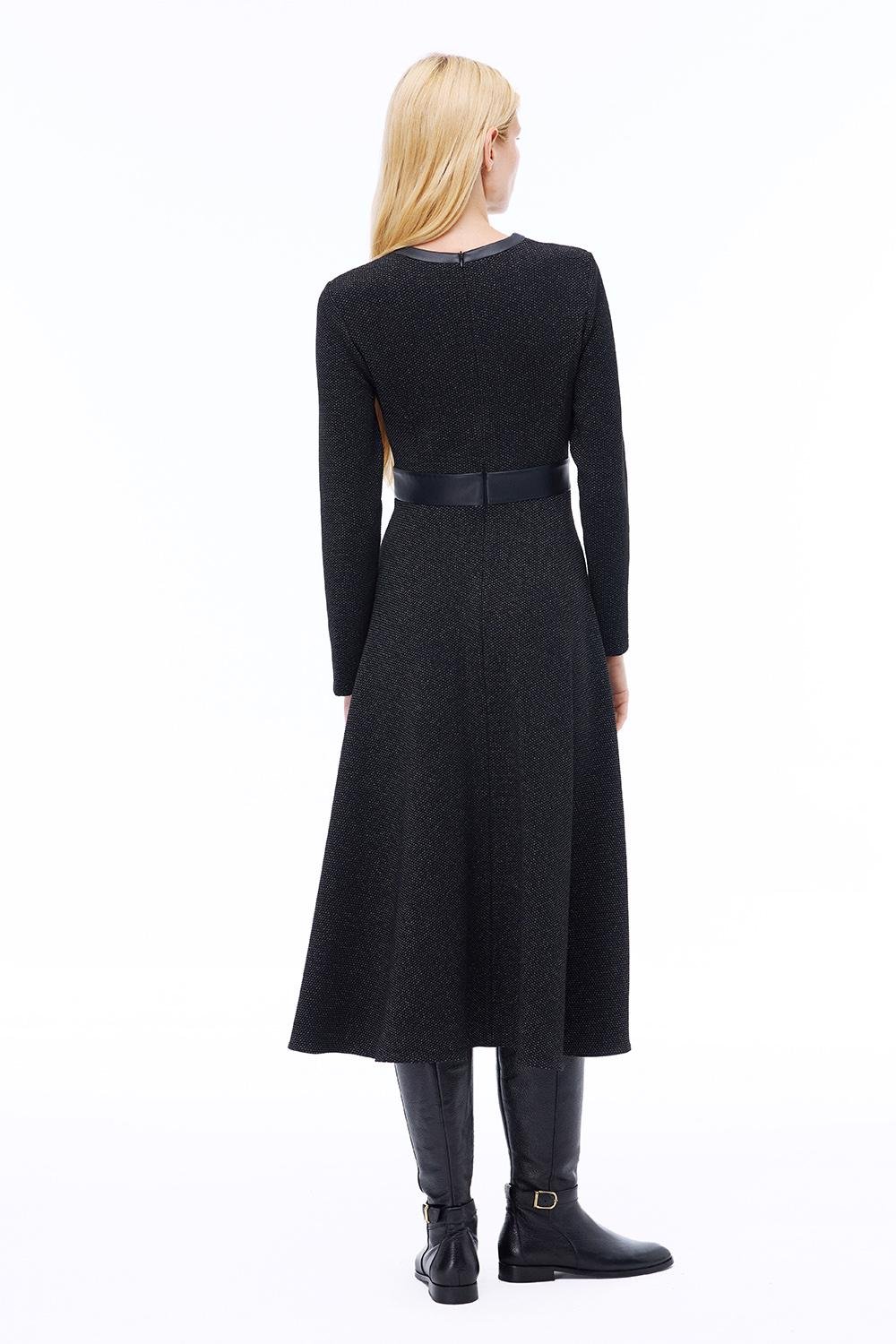 Midi Boy Takma Kol Bisiklet Yaka Siyah Elbise
