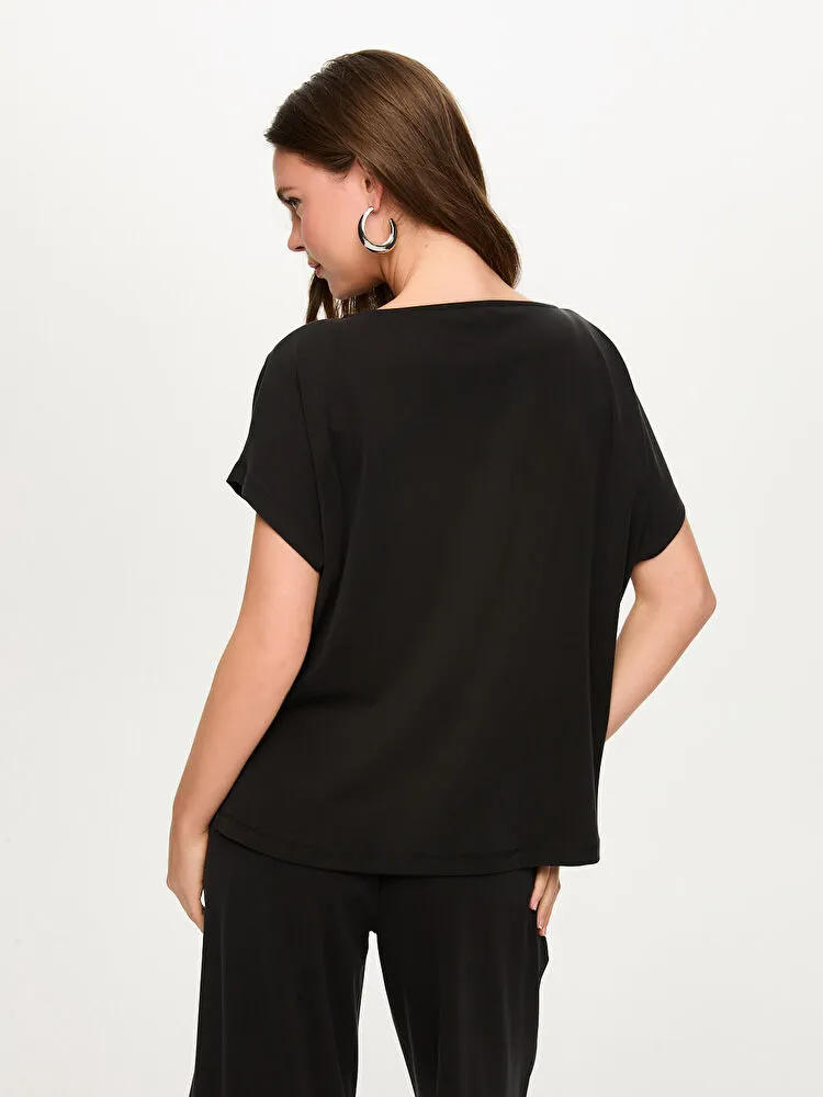 Omuzu Yırtmaç Detaylı Modallı T-Shırt S26TSH080