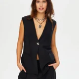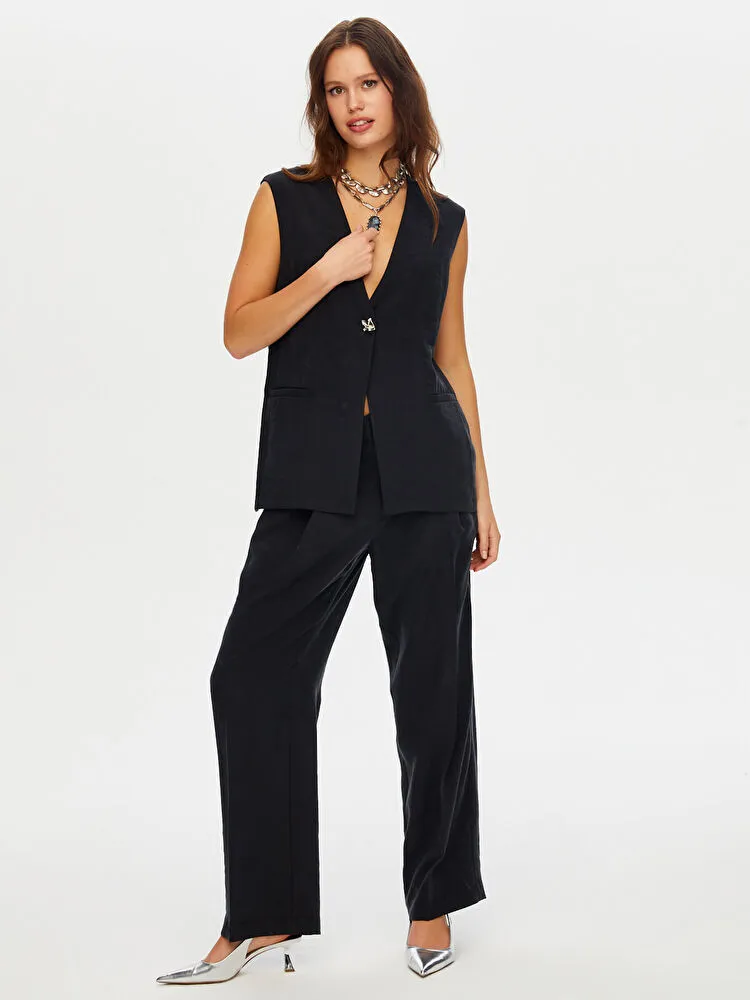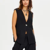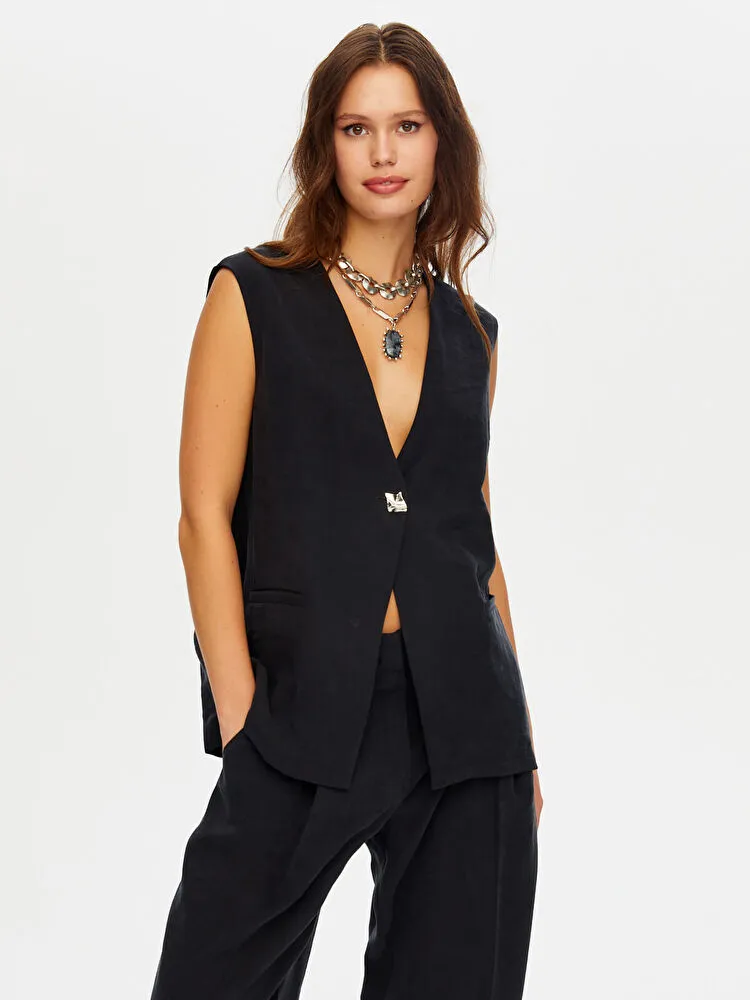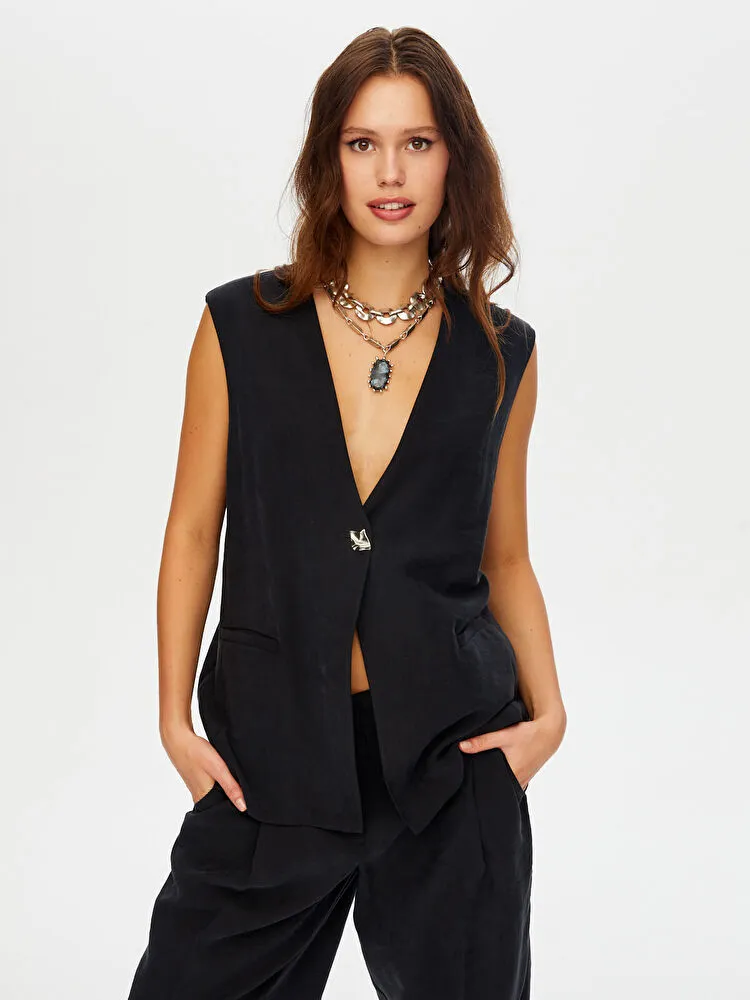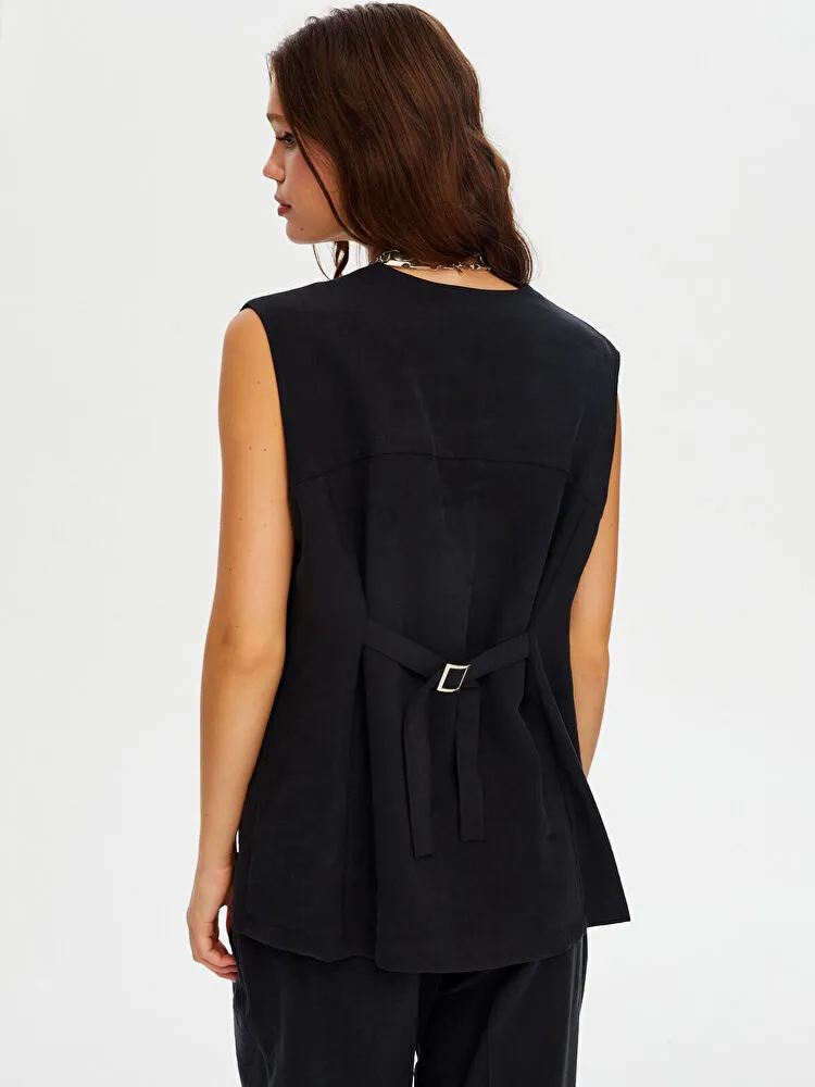 Önü Düğme Ve Arkası Bağcıklı Tenselli Yelek