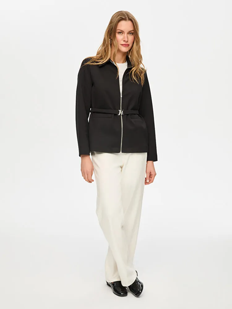 Ürün Adı : Önü Fermuarlı Kemer Detaylı Örme Ceket
