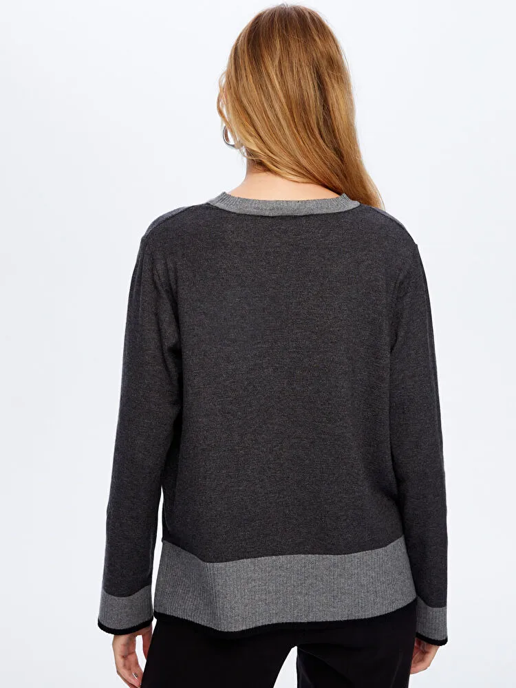 Renk Bloklu Bisiklet Yaka Triko Bluz