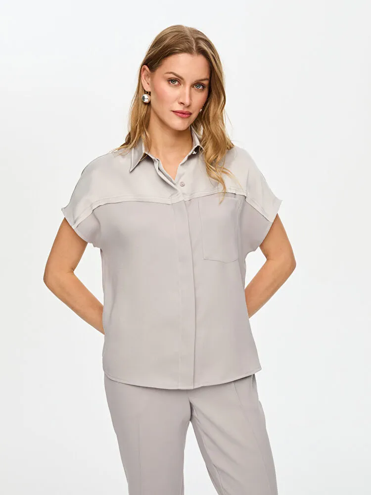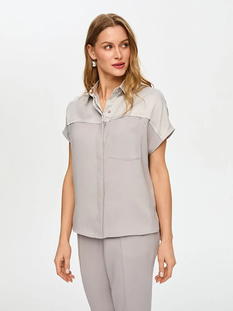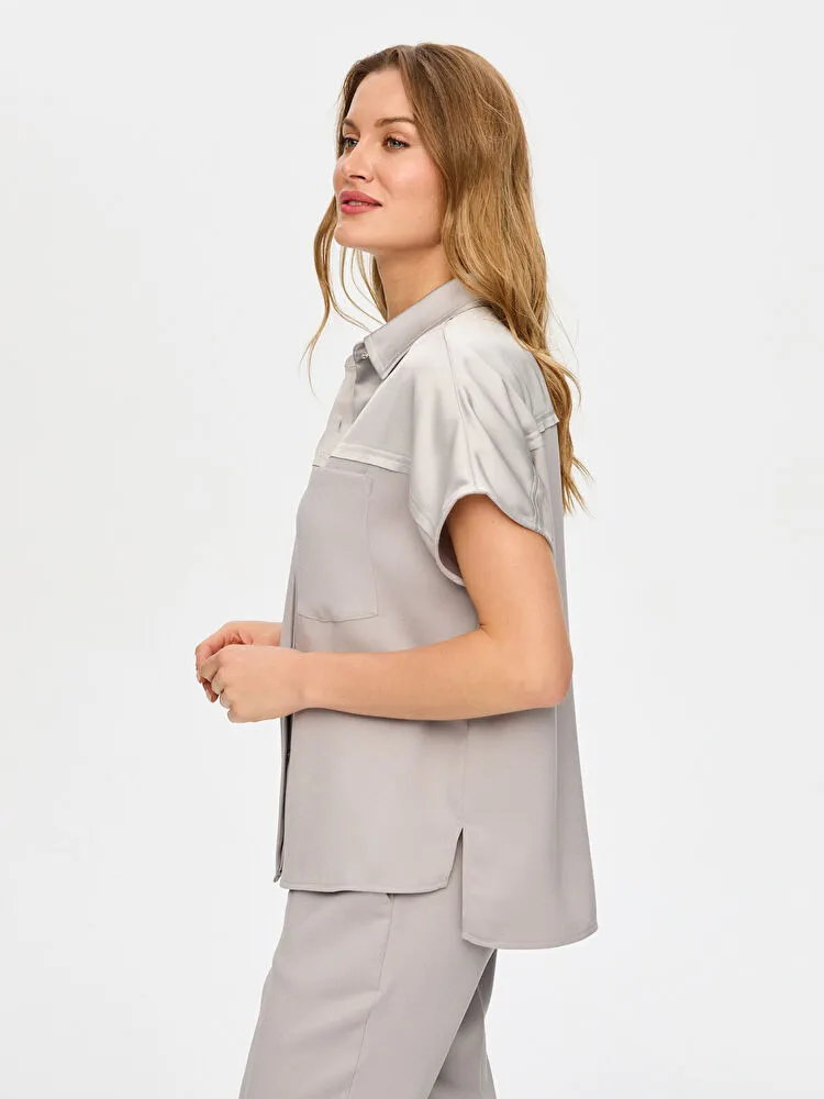 Ürün Adı : Saten Garnili Krep Kısa Kol Gömlek S26GML025