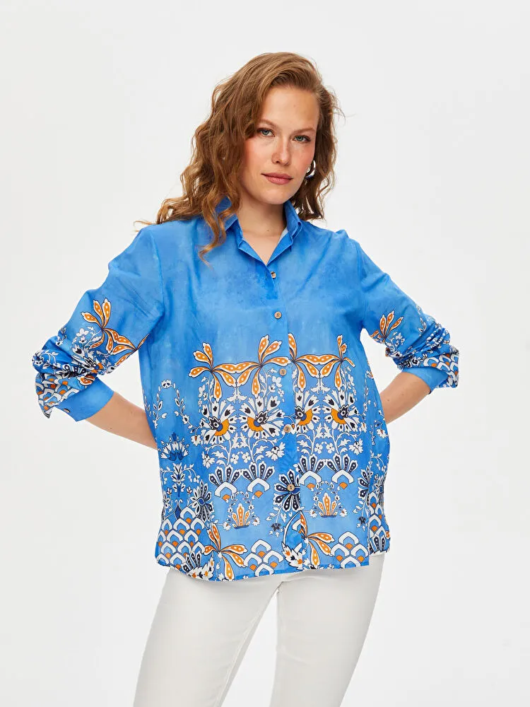 Ürün Adı : Eteği Etnik Desen Pamuk Vual Gömlek