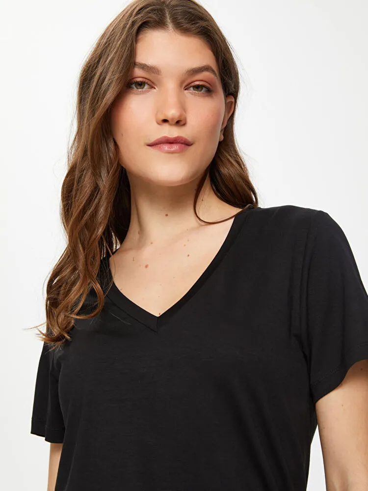 V Yaka Kısa Kol T-Shirt