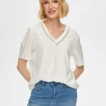 Be the first to review “Yakası Ve Kolu Delik İşi Nakış Detaylı Kısa Kol T-Shirt”